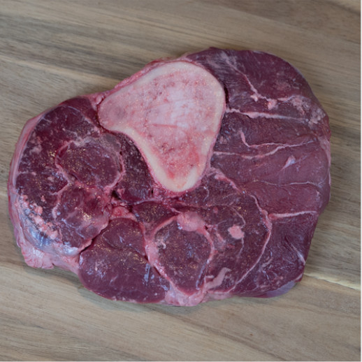 Runderschenkel met been van het Belgische witblauw ras, afkomstig van eigen boerderij. Per 750 gram. (kiloprijs € 16,00)